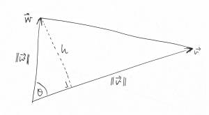 - Height (at right angles to base) is $h=\|\ww\|\sin \theta$ where $\theta$ is the angle between $\vv$ and $\ww$.