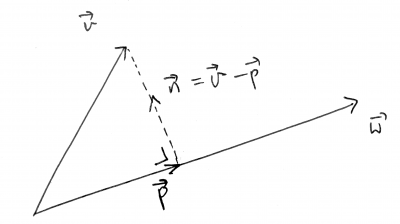 - the vector $\nn=\vv-\pp$ is orthogonal to $\ww$.