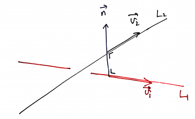 - Let $\Pi$ = plane with normal vector $\nn$ which contains $L_1$.