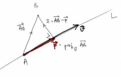 - $\def\pp{\vec p}\dist(B,L)=\|\nn\|=\|\vec{AB}-\pp\|$