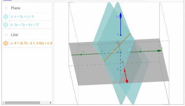 - To find the equation of the line of intersection, we must find the points which are solutions of both equations at the same time.